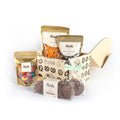Filled with 1/2 lb Tortoises, Cajun Crunch, 1/2 lb bag of candy, 120 gr milk chocolate pretzels and 4 solid chocolate molded items. 2 1/4 lbs
